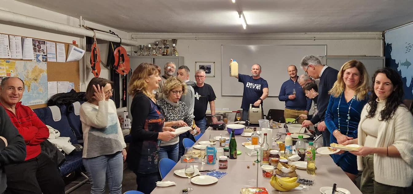 Apres une session piscine déguisée, un repas festif au local du club. Merci à tous les participants !