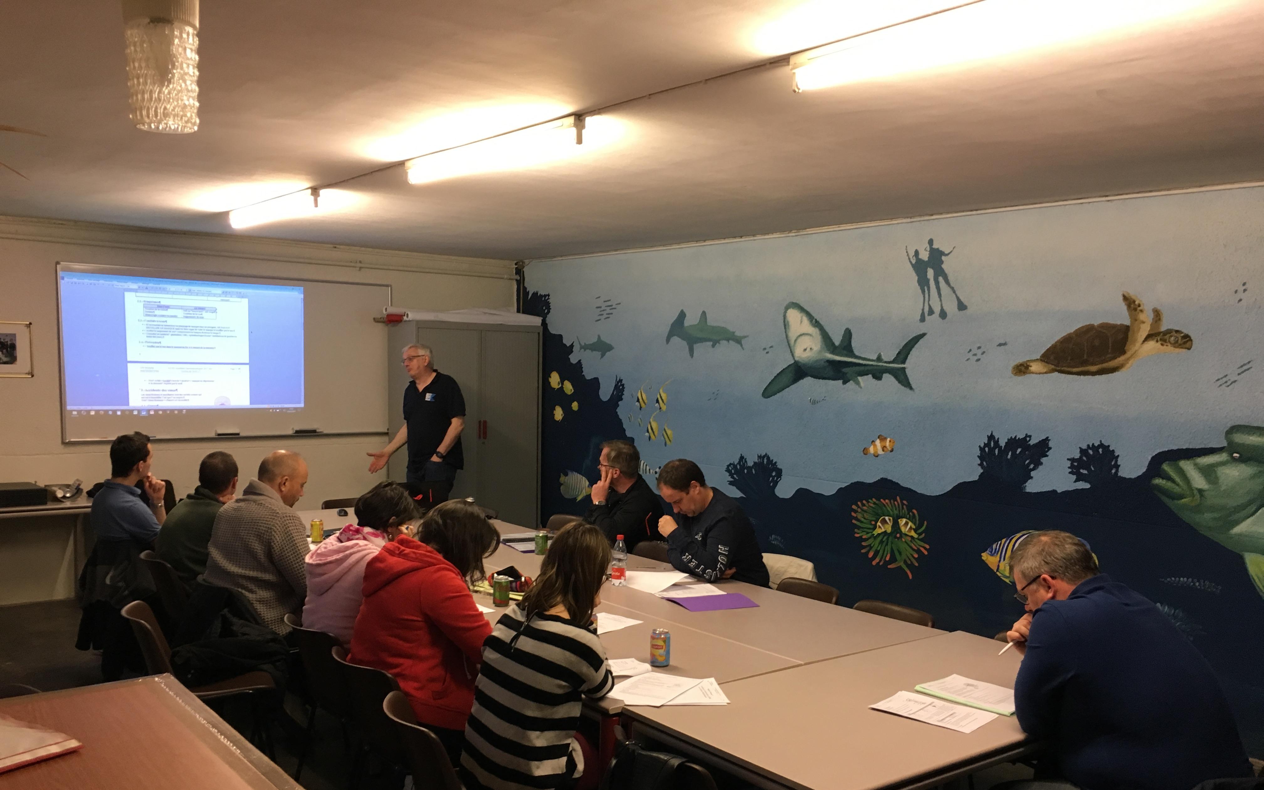 • rayonnages de stockage pour le matériel (blocs, stabs, détendeurs, palmes piscine, mannequin, timers, ordinateurs , boussoles, parachutes, plombs…)